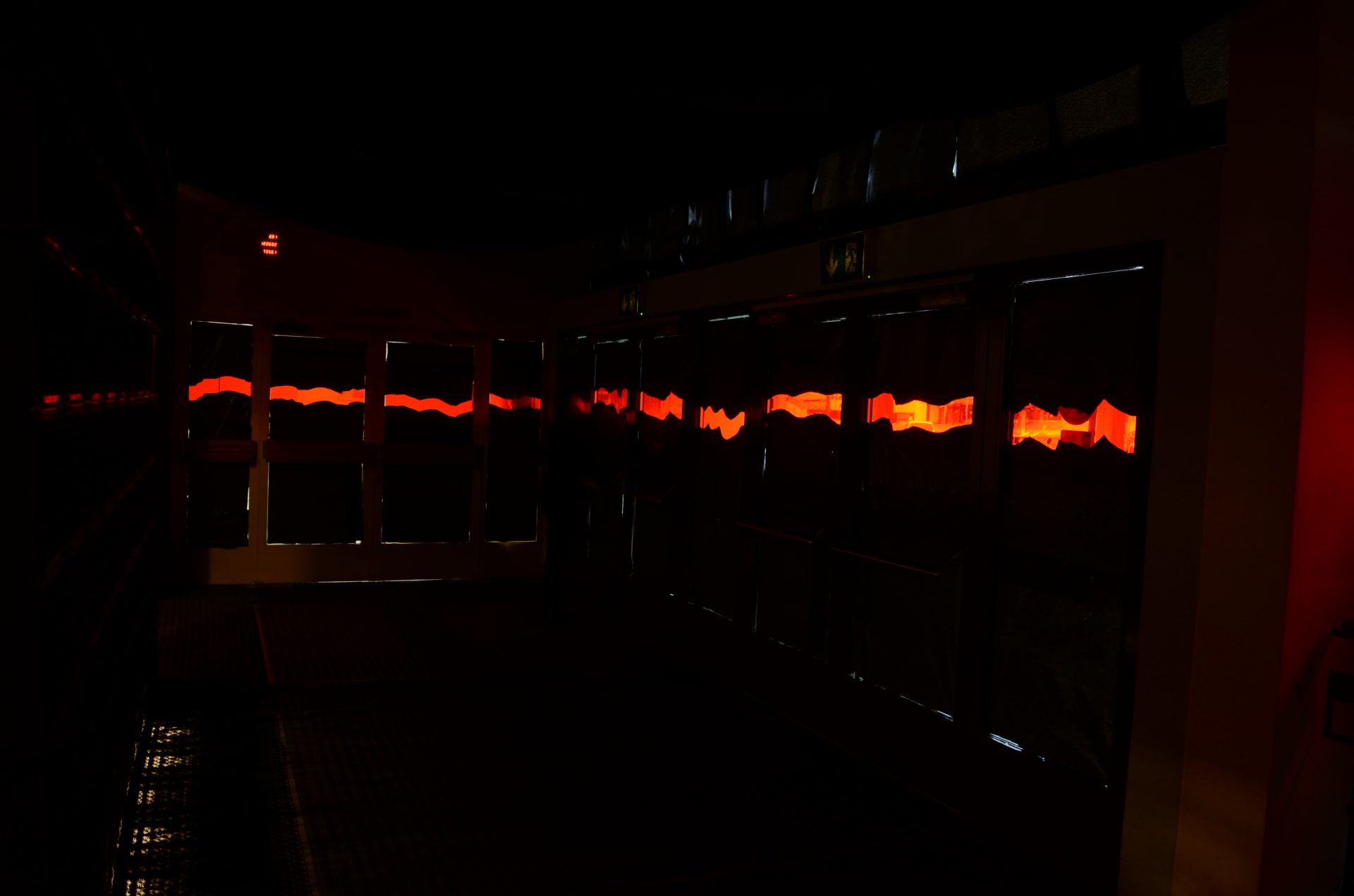 Die Dunkelheit und Enge des Raumes symbolisieren die Bedrohung. Gleichzeitig ermöglicht nur der rote Riss eine gefilterte Orientierung nach draußen. So kann die Rauminstallation verschiedene Assoziationen bei den Betrachter*innen auslösen: