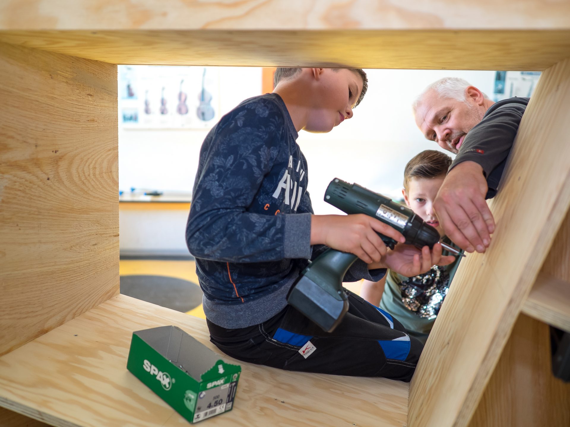 In einer Projektwoche in den Herbstferien wurden alle Möbel mit 12 Kindern und 4 Erwachsenen zusammengebaut.