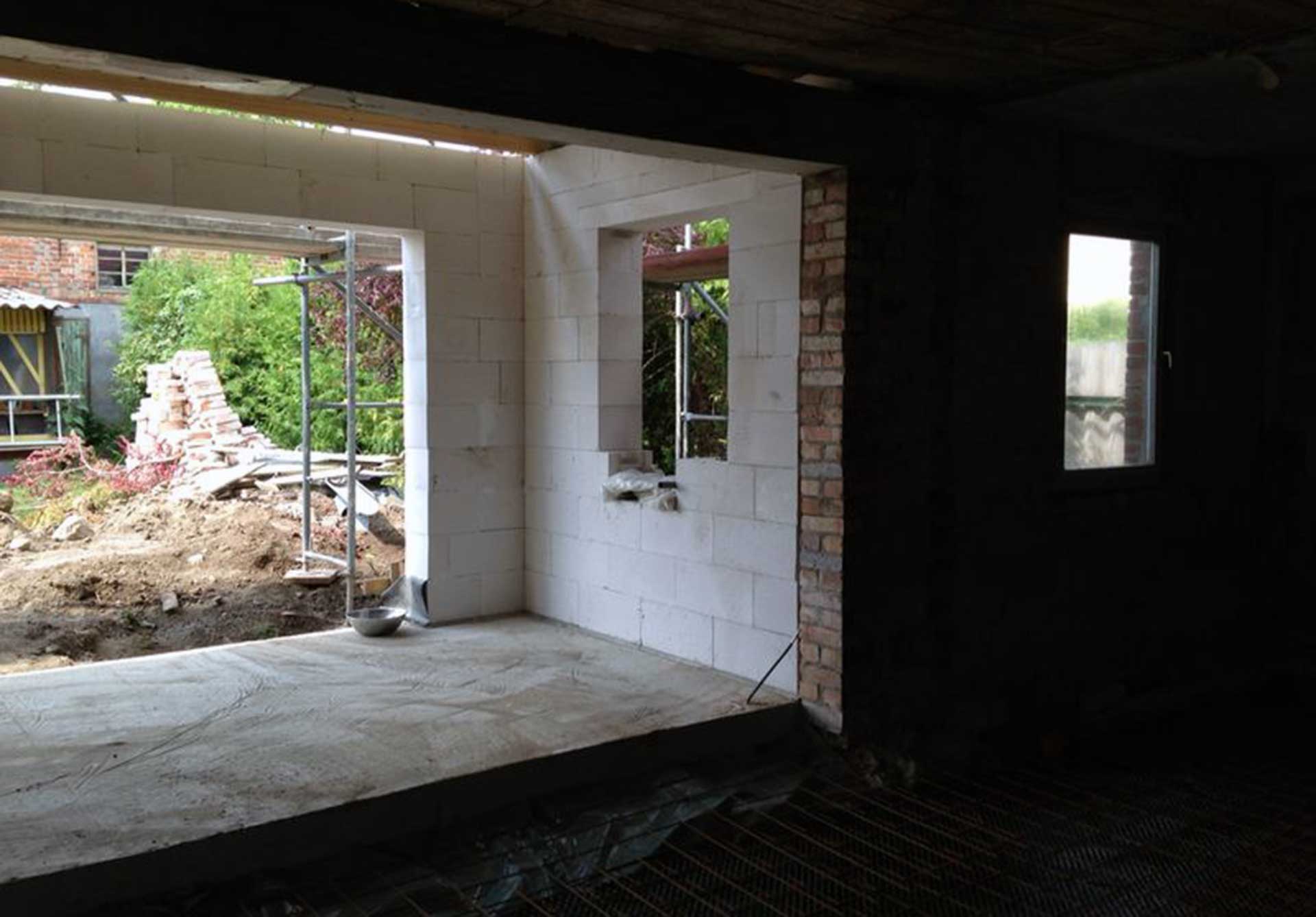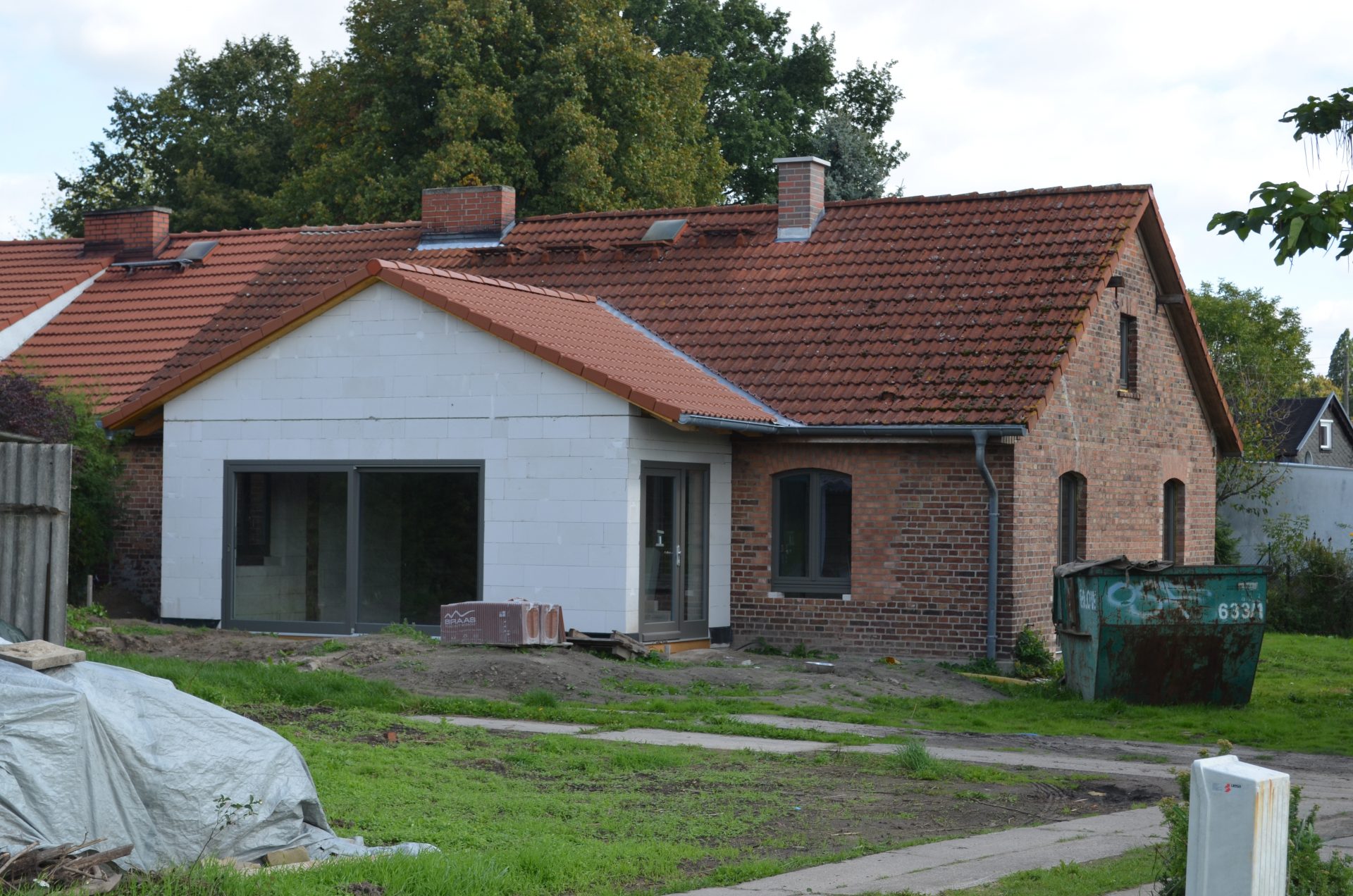 am dorfrand in der uckermark wird eine kleine doppelhaushälfte um einen giebel erweitert und die fassade an mehreren stellen geöffnet.